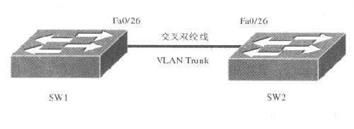 如下圖所示,用交叉網(wǎng)線把 SW1交換機的Fast Ethernet0/26端口和SW2交換機的Fast Ethernet0/26端口連接起來。