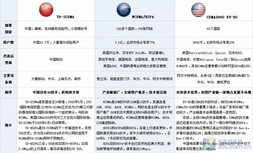 目前主流3G標準解析 中國移動TD-SCDMA 全稱為Time Division - Synchronous CDMA(時分同步CDMA),該標準是由中國大陸獨自制定的3G標準,簡稱TD,是中國電信行業百年來第一個完整的移動通信技術標準,采用智能天線、聯合檢測、接力切換、同步CDMA、可變擴頻系統、自適應功率調整等技術,具有系統容量大、頻譜利用率高、抗干擾能力強等優點的移動通信技術。 1999年6月29日,中國原郵電部電信科學技術研究院(大唐電信)向ITU提出。該標準將智能無線、同步CDMA和軟件無線電等當今國際領先技術融于其中,在頻譜利用率、對業務支持具有靈活性、頻率靈活性及成本等方面的獨特優勢。另外,由于中國內的龐大的市場,該標準受到各大主要電信設備廠商的重視,全球一半以上的設備廠商都宣布可以支持TD—SCDMA標準。 該標準提出不經過2.5代的中間環節,直接向3G過渡,非常適用于GSM系統向3G升級。 中國聯通WCDMA 全稱為Wideband CDMA,也稱為CDMA Direct Spread,意為寬頻分碼多重存取,這是基于GSM網發展出來的3G技術規范,是歐洲提出的寬帶CDMA技術,它與日本提出的寬帶CDMA技術基本相同,目前正在進一步融合。其支持者主要是以GSM系統為主的歐洲廠商,日本公司也或多或少參與其中,包括歐美的愛立信、阿爾卡特、諾基亞、朗訊、北電,以及日本的NTT、富士通、夏普等廠商。這套系統能夠架設在現有的GSM網絡上,對于系統提供商而言可以較輕易地過渡,而GSM系統相當普及的亞洲對這套新技術的接受度預料會相當高。因此W-CDMA具有先天的市場優勢。 該標準提出了GSM(2G)-GPRS-EDGE-WCDMA(3G)的演進策略。GPRS是General Packet Radio Service (通用分組無線業務)的簡稱,EDGE是Enhanced Data rate for GSM Evolution (增強數據速率的GSM演進)的簡稱,這兩種技術被稱為2.5代移動通信技術。 中國電信CDMA2000 CDMA2000是由窄帶CDMA(CDMA IS95)技術發展而來的寬帶CDMA技術,也稱為CDMA Multi-Carrier,由美國高通北美公司為主導提出,摩托羅拉、Lucent和后來加入的韓國三星都有參與,韓國現在成為該標準的主導者。這套系統是從窄頻CDMAOne數字標準衍生出來的,可以從原有的CDMAOne結構直接升級到3G,建設成本低廉。但目前使用CDMA的地區只有日、韓和北美,所以CDMA2000的支持者不如W-CDMA多。不過CDMA2000的研發技術卻是目前各標準中進度最快的,許多3G手機已經率先面世。該標準提出了從CDMA IS95(2G)-CDMA20001x-CDMA20003x(3G)的演進策略。CDMA20001x被稱為2.5代移動通信技術。CDMA20003x與CDMA20001x的主要區別在于應用了多路載波技術,通過采用三載波使帶寬提高。目前中國聯通正在采用這一方案向3G過渡,并已建成了CDMA IS95網絡。 另外還有一種3G標準,就是WiMAX,其實嚴格上來說應該算4G技術,但未了獲得國際電信聯盟的支持,才自降身價,稱自己為3G技術 WiMAX WiMAX 的全名是微波存取全球互通(Worldwide Interoperability for Microwave Access),又稱為802.16無線城域網,是又一種為企業和家庭用戶提供“最后一英里”的寬帶無線連接方案。將此技術與需要授權或免授權的微波設備相結合之后,由于成本較低,將擴大寬帶無線市場,改善企業與服務供應商的認知度。2007年10月19日,國際電信聯盟在日內瓦舉行的無線通信全體會議上,經過多數國家投票通過,WiMAX正式被批準成為繼WCDMA、CDMA2000和TD-SCDMA之后的第四個全球3G標準。 網絡的神奇作用吸引著越來越多的用戶加入其中,正因如此,網絡的承受能力也面臨著越來越嚴峻的考驗―從硬件上、軟件上、所用標準上......,各項技術都需要適時應勢,對應發展,這正是網絡迅速走向進步的催化劑。 |