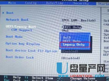 ![]() 5、再把“UEFI/Legacy Boot”的狀態改為“Legacy Only”。如下圖所示: