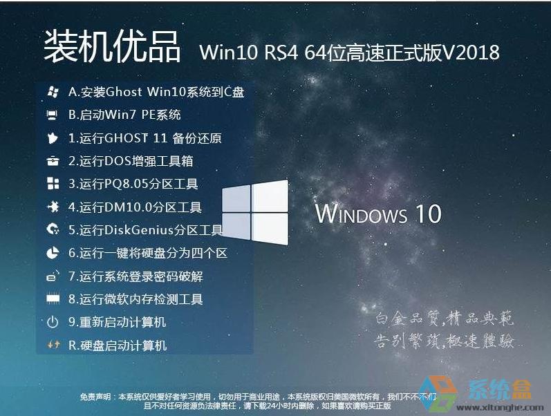 Windows 10是美國微軟公司研發(fā)的跨平臺及設(shè)備應(yīng)用的操作系統(tǒng)。是微軟發(fā)布的最后一個獨立Windows版本。Windows 10共有7個發(fā)行版本,分別面向不同用戶和設(shè)備。截止至2018年3月7日,Windows 10正式版已更新至秋季創(chuàng)意者10.0.16299.309版本,預(yù)覽版已更新至春季創(chuàng)意者10.0.17120版本 裝機優(yōu)品系列裝機系統(tǒng)可以百分百的部署在你的電腦上,不管是筆記本還是臺式機or平板、一體機都完美兼容,本系統(tǒng)純凈、穩(wěn)定‘、安全,速度快,可謂是良心之作,裝機優(yōu)品系列Win10系統(tǒng)是微軟原版的小修改版本,功能保持100%可用,精簡不需要的APP應(yīng)用、關(guān)閉不需要的服務(wù)(都可以自行開啟或重裝),進一步的減小體積優(yōu)化速度,對Win10進行結(jié)構(gòu)化優(yōu)化,使運行更流暢,軟件不卡機。本系統(tǒng)自帶必備運行庫,驅(qū)動程序,安裝好已經(jīng)永久激活,歡迎下載體驗。裝機優(yōu)品ISO鏡像V2018.5圖示: ![]() ![]() ![]() 一、系統(tǒng)更新: 采用最新Win10春季創(chuàng)意者更新17134官方正版鏡像,本次更新主要修復(fù)BUG,提高系統(tǒng)穩(wěn)定性,解決機器藍屏問題等。批量更新累積更新,系統(tǒng)更安全民快速,添加了對Win10正式版的進一步優(yōu)化。 系統(tǒng)特點: 1、以原版Win10專業(yè)正式版鏡像制作,運行穩(wěn)定; 2、開啟Administrator管理員帳戶,完全獲取系統(tǒng)所有權(quán)限; 3、關(guān)閉用戶帳戶控制UAC,不會彈出煩人的用戶帳戶控制窗口。 4、去除可執(zhí)行文件小盾牌; 4、關(guān)閉smartscreen篩選; 5、關(guān)閉Windows Defender(組策略中開啟)減少內(nèi)存、CPU占用; 6、資源管理器最小化時顯示完整路徑; 7、關(guān)閉打開程序時的“安全警告”; 8、桌面顯示常用 計算機、網(wǎng)絡(luò)、等圖標(biāo) 9、去除新建快捷方式時的“新建快捷方式”字樣; 10、優(yōu)化磁盤緩存、優(yōu)化磁盤占用; 11、優(yōu)化程序響應(yīng)速度、使用軟件更高效; 12、優(yōu)化內(nèi)存讀取,自動釋放不用的DLL,減少占用; 13、優(yōu)化啟動項、自啟服務(wù)加快開關(guān)機速度; 14、禁用Windows錯誤報告; 15、優(yōu)化網(wǎng)絡(luò)連接,上網(wǎng)和下載更快速; 16、微軟拼音默認(rèn)英文; 17、記事本啟用自動換行、顯示狀態(tài)欄; 18、包含大型游戲必要的運行庫、組件等(如最新direcetX) 二、系統(tǒng)優(yōu)化: 1、預(yù)先優(yōu)化使系統(tǒng)更流暢(優(yōu)化方案通過嚴(yán)格測試,保證系統(tǒng)穩(wěn)定運行); 2、使用穩(wěn)定的優(yōu)化方案,保持系統(tǒng)穩(wěn)定性和兼容性; 3、采用原版Windows10離線封裝,杜絕惡意插件(安裝過程自動清除無效啟動啟,惡意AUTO病毒); 4、免激活技術(shù)讓你安裝好聯(lián)網(wǎng)即可永久激活; 5、專為筆記本設(shè)計,智能檢測筆記本設(shè)備(無線、數(shù)字鍵盤的開啟或關(guān)閉); 6、優(yōu)化磁盤訪問速度、自動優(yōu)化系統(tǒng)分區(qū); 7、優(yōu)化內(nèi)存配置、優(yōu)化進程優(yōu)先等級; 8、加快程序運行速度、加快響應(yīng)速度; 9、優(yōu)化網(wǎng)絡(luò)連接數(shù)、IE下載連接數(shù),上網(wǎng)速度更快; 10、優(yōu)化系統(tǒng)緩存,加快前臺顯示速度,使Win10更流暢; 11、關(guān)閉系統(tǒng)錯誤報告,關(guān)閉兼容性助手; 12、系統(tǒng)啟動出錯禁止彈出錯誤信息; 13、開啟自動刷新、自動釋放不使用的DLL; 14、關(guān)閉Windows Defender; 15、支持固態(tài)硬盤SSD 4K對齊功能,支持最新筆記本電腦配置; 16、集成VC++ 2005 2008 2010 .Net 4.6 .Net 3.5; 17、添加 經(jīng)典計算器 可以在開始——所有程序——附件中找到; 18、桌面顯示常用 計算機、網(wǎng)絡(luò)、等圖標(biāo) 19、去除新建快捷方式時的“新建快捷方式”字樣; 20、優(yōu)化磁盤緩存、優(yōu)化磁盤占用; 21、優(yōu)化內(nèi)存讀取,自動釋放不用的DLL,減少占用; 22、優(yōu)化啟動項、自啟服務(wù)加快開關(guān)機速度; 23、禁用Windows錯誤報告; 24、優(yōu)化網(wǎng)絡(luò)連接,上網(wǎng)和下載更快速; 25、微軟拼音默認(rèn)英文; 26、記事本啟用自動換行、顯示狀態(tài)欄; 27、隱藏此電腦中 7個文件夾(3D庫、下載、音樂、視頻、文檔等) 28、自動KMS 循環(huán)激活,如已經(jīng)激活過的電腦采用數(shù)字權(quán)利激活。 三、安裝最低配置要求 1、處理器:1 GHz 64位處理器 2、內(nèi)存:4 GB及以上 3、顯卡:帶有 WDDM 1.0或更高版本驅(qū)動程序Direct×9圖形設(shè)備 4、硬盤可用空間:20G(主分區(qū),NTFS格式) 5、顯示器:要求分辨率在1024×768像素及以上,或可支持觸摸技術(shù)的顯示設(shè)備。
