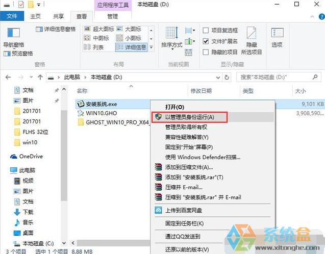 選擇列表中的系統盤(默認C盤),選擇“WIN10.GHO”映像文件,點擊執行。會提示是否重啟,點擊是,系統將自動安裝。
