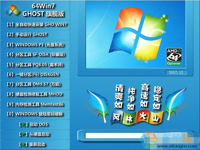 Windows 7,中文名稱視窗7,是由微軟公司(Microsoft)開發的操作系統,內核版本號為Windows NT 6.1。Windows 7可供家庭及商業工作環境:筆記本電腦 、平板電腦 、多媒體中心等使用。和同為NT6成員的Windows Vista一脈相承,Windows 7繼承了包括Aero風格等多項功能,并且在此基礎上增添了些許功能。 ![]() ![]() ![]() ![]() 風林火山 GHOST WIN7 SP1 X64 萬能裝機版 V2017.12 具有穩定流暢的特點。風林火山系統能夠實現一鍵無人裝機,自動識別并安裝電腦驅動,支持一鍵全自動快速備份和恢復系統,是很多電腦城和電腦愛好者的選擇。 一、版本更新內容 1、更新了系統補丁和Office2007 3in1所有補丁到2017-12(可通過微軟漏洞掃描和衛士漏洞掃描) 2、升級Internet Explorer為IE9 3、增加數款驅動的支持,支持最新的H67 H77 Z77等主板 4、更新壓縮文檔管理軟件 WinRAR 至官方5.01 版 5、更新硬盤安裝器,增加硬盤安裝系統兼容性 6、更新DOS和PE下的分區工具DiskGenius為3.5版 7、更新IT天空最新萬能驅動v6.1 8、其它細節的優化和修正 9、用戶文檔移到D盤用戶目錄文件夾 二、安裝最低配置要求 1、處理器:1 GHz 64位處理器 2、內存:2 GB及以上 3、顯卡:帶有 WDDM 1.0或更高版本驅動程序Direct×9圖形設備 4、硬盤可用空間:20G(主分區,NTFS格式) 5、顯示器:要求分辨率在1024×768像素及以上,或可支持觸摸技術的顯示設備。 三、安裝方法 在安裝系統前,請注意備份C盤上的重要數據,系統重裝會重置C盤,建議提前轉移個人資料并備份硬件驅動。下面推薦三種安裝系統的方式,用戶根據自己的情況選擇方法安裝。 1、硬盤安裝(無光盤、U盤,推薦) 將下載的ISO系統鏡像文件解壓到除系統盤(默認C盤)外的其他盤根目錄,例:(D:\),右鍵以管理員身份運行“SETUP_GHOST.EXE”;