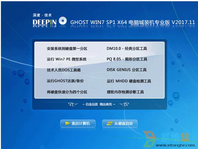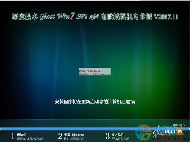 Windows 7,中文名稱視窗7,是由微軟公司(Microsoft)開發(fā)的操作系統(tǒng),內(nèi)核版本號為Windows NT 6.1。Windows 7可供家庭及商業(yè)工作環(huán)境:筆記本電腦 、平板電腦 、多媒體中心等使用。和同為NT6成員的Windows Vista一脈相承,Windows 7繼承了包括Aero風(fēng)格等多項功能,并且在此基礎(chǔ)上增添了些許功能。 ![]() ![]() ![]() ![]() 深度技術(shù) GHOST WIN7 SP1 X64 電腦城裝機專業(yè)版 V2017.11 能夠完美兼容臺式機、品牌機及筆記本等新老機型,且安全無毒,是您裝機的最佳選擇。“深度,值得深入“是深度技術(shù)團(tuán)隊對千萬深度技術(shù)愛好者的承諾! 一、版本更新內(nèi)容 1、更新了系統(tǒng)補丁和Office2007 3in1所有補丁到2017-11(可通過微軟漏洞掃描和衛(wèi)士漏洞掃描) 2、升級Internet Explorer為IE9 3、增加數(shù)款驅(qū)動的支持,支持最新的H67 H77 Z77等主板 4、更新壓縮文檔管理軟件 WinRAR 至官方5.01 版 5、更新硬盤安裝器,增加硬盤安裝系統(tǒng)兼容性 6、更新DOS和PE下的分區(qū)工具DiskGenius為3.5版 7、更新驅(qū)動為自由天空E驅(qū)動v6.6 8、其它細(xì)節(jié)的優(yōu)化和修正 9、用戶文檔移到D盤用戶目錄文件夾 二、安裝最低配置要求 1、處理器:1 GHz 64位處理器 2、內(nèi)存:2 GB及以上 3、顯卡:帶有 WDDM 1.0或更高版本驅(qū)動程序Direct×9圖形設(shè)備 4、硬盤可用空間:20G(主分區(qū),NTFS格式) 5、顯示器:要求分辨率在1024×768像素及以上,或可支持觸摸技術(shù)的顯示設(shè)備。 三、安裝方法 在安裝系統(tǒng)前,請注意備份C盤上的重要數(shù)據(jù),系統(tǒng)重裝會重置C盤,建議提前轉(zhuǎn)移個人資料并備份硬件驅(qū)動。下面推薦三種安裝系統(tǒng)的方式,用戶根據(jù)自己的情況選擇方法安裝。 1、硬盤安裝(無光盤、U盤,推薦) 將下載的ISO系統(tǒng)鏡像文件解壓到除系統(tǒng)盤(默認(rèn)C盤)外的其他盤根目錄,例:(D:\),右鍵以管理員身份運行“ONEKEY.EXE”;