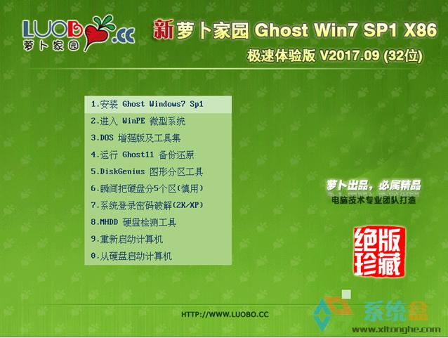 Windows 7,中文名稱視窗7,是由微軟公司(Microsoft)開發的操作系統,內核版本號為Windows NT 6.1。Windows 7可供家庭及商業工作環境:筆記本電腦 、平板電腦 、多媒體中心等使用。和同為NT6成員的Windows Vista一脈相承,Windows 7繼承了包括Aero風格等多項功能,并且在此基礎上增添了些許功能。 ![]() ![]() ![]() ![]() 蘿卜家園 GHOST WIN7 SP1 X86 旗艦穩定版 V2017.09 采用人性化設計,并且安全純凈、適用性強,系統不含任何病毒、木馬及流氓軟件,支持各類新老機型,是一款不可多得的精品系統。 一、版本更新內容 1、更新了系統補丁和Office2007 3in1所有補丁到2017-09(可通過微軟漏洞掃描和衛士漏洞掃描) 2、升級Internet Explorer為IE9 3、更新壓縮文檔管理軟件 WinRAR 至官方 5.01 版 4、更新硬盤安裝器,增加硬盤安裝系統兼容性 5、更新DOS和PE下的分區工具DiskGenius為3.5版 6、增加數款驅動的支持 7、其它細節的優化和修正 二、安裝最低配置要求 1、處理器:1 GHz 32位處理器 2、內 存:1 GB 及以上 3、顯 卡:支持DirectX 9 128M 及以上(開啟AERO效果) 4、硬盤空間:16G以上(主分區,NTFS格式) 5、顯示器:要求分辨率在1024X768像素及以上,或可支持觸摸技術的顯示設備。 三、安裝方法 在安裝系統前,請注意備份C盤上的重要數據,系統重裝會重置C盤,建議提前轉移個人資料并備份硬件驅動。下面推薦三種安裝系統的方式,用戶根據自己的情況選擇方法安裝。 1、硬盤安裝(無光盤、U盤,推薦) 將下載的ISO系統鏡像文件解壓到除系統盤(默認C盤)外的其他盤根目錄,例:(D:\),右鍵以管理員身份運行“OneKey.exe”;
