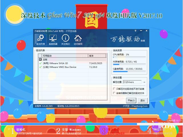 Windows 7,中文名稱視窗7,是由微軟公司(Microsoft)開發的操作系統,內核版本號為Windows NT 6.1。Windows 7可供家庭及商業工作環境:筆記本電腦 、平板電腦 、多媒體中心等使用。和同為NT6成員的Windows Vista一脈相承,Windows 7繼承了包括Aero風格等多項功能,并且在此基礎上增添了些許功能。 ![]() ![]() ![]() ![]() 深度技術 GHOST WIN7 SP1 X64 歡度國慶版 V2017.10 能夠完美兼容臺式機、品牌機及筆記本等新老機型,且安全無毒,是您裝機的最佳選擇。“深度,值得深入“是深度技術團隊對千萬深度技術愛好者的承諾! 一、版本更新內容 1、更新了系統補丁和Office2007 3in1所有補丁到2017-10(可通過微軟漏洞掃描和衛士漏洞掃描) 2、升級Internet Explorer為IE9 3、增加數款驅動的支持,支持最新的H67 H77 Z77等主板 4、更新壓縮文檔管理軟件 WinRAR 至官方5.01 版 5、更新硬盤安裝器,增加硬盤安裝系統兼容性 6、更新DOS和PE下的分區工具DiskGenius為3.5版 7、更新驅動為自由天空E驅動v6.6 8、其它細節的優化和修正 9、用戶文檔移到D盤用戶目錄文件夾 二、安裝最低配置要求 1、處理器:1 GHz 64位處理器 2、內存:2 GB及以上 3、顯卡:帶有 WDDM 1.0或更高版本驅動程序Direct×9圖形設備 4、硬盤可用空間:20G(主分區,NTFS格式) 5、顯示器:要求分辨率在1024×768像素及以上,或可支持觸摸技術的顯示設備。 三、安裝方法 在安裝系統前,請注意備份C盤上的重要數據,系統重裝會重置C盤,建議提前轉移個人資料并備份硬件驅動。下面推薦三種安裝系統的方式,用戶根據自己的情況選擇方法安裝。 1、硬盤安裝(無光盤、U盤,推薦) 將下載的ISO系統鏡像文件解壓到除系統盤(默認C盤)外的其他盤根目錄,例:(D:\),右鍵以管理員身份運行“ONEKEY.EXE”;