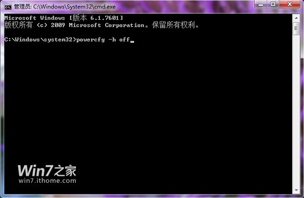 以管理員模式運行命令提示符后,輸入powercfg -h off后回車即可關閉休眠功能。同時,C盤中也釋放出相應的空間。