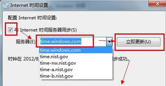 勾選“與Internet 時間服務器同步”選項,然后就能選擇你要同步的服務器,這樣就能獲取到最為準確的時間了!