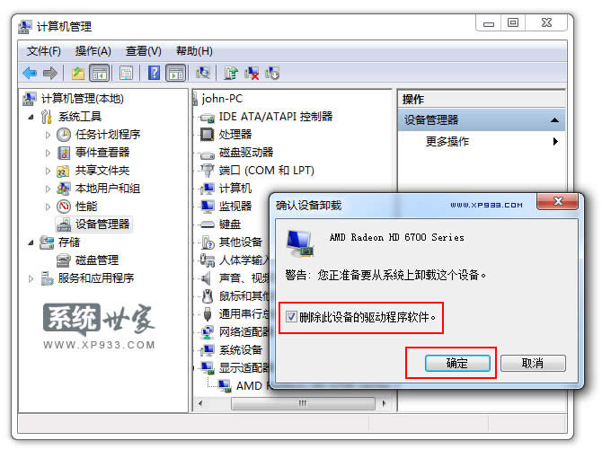 我們找到了驅動的所在位置,那怎么卸載win7系統驅動呢?其實很簡單的,鼠標點幾下就可以了,下面我們以《卸載顯卡驅動》為例,如下圖。