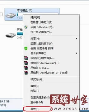 win7 everyone用戶權限如何修改? 回答這問題之前,請自己先了解清楚哪個地方需要設置win7 everyone權限。xp933胖胖以F盤為例,大家可以根據自身的需求來選擇!對準F盤盤符點擊右鍵,選擇屬性。