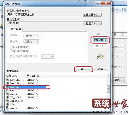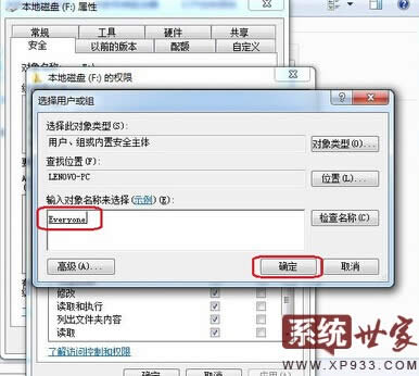 在選擇用戶或組的界面中,在輸入對象名稱來選擇中我們就可以看到win7 everyone權限了,我們直接單擊確定就OK。