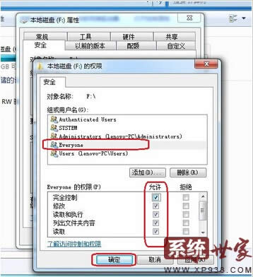 最后一步,我們返回到F盤的權限窗口中,將完全控制勾選上,然后單擊確定即可! windows 7 的設計主要圍繞五個重點——針對筆記本電腦的特有設計;基于應用服務的設計;用戶的個性化;視聽娛樂的優化;用戶易用性的新引擎。 跳躍列表,系統故障快速修復等,這些新功能令Windows 7成為最易用的Windows。 |