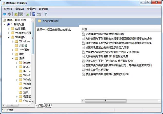 3、查看右側的設備安裝限制,選定禁止安裝未由其他策略設置描述的設備。 上述介紹的步驟就是win7系統中,利用系統組策略編輯,來關閉系統中的驅動自動更新操作。方法很簡單,操作起來也很方便,只要簡單的設置一下就可以免去很多平時不必要的麻煩了。 windows 7 的設計主要圍繞五個重點——針對筆記本電腦的特有設計;基于應用服務的設計;用戶的個性化;視聽娛樂的優化;用戶易用性的新引擎。 跳躍列表,系統故障快速修復等,這些新功能令Windows 7成為最易用的Windows。 |