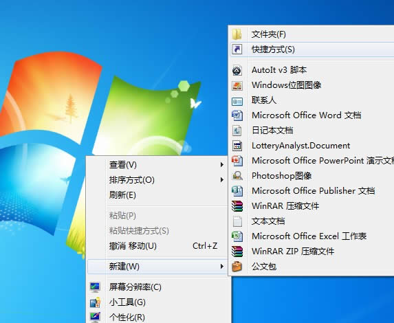 在桌面創建了3D效果快捷方式后,以后只要點擊該快捷方式后就可以實現3D頁面窗口效果的切換了。那么,如何在Windows 7桌面實現3D效果快捷方式呢?下面來看看在桌面創建快捷方式實現Win7 3D切換頁面效果的方法吧。 1、在桌面中單擊右鍵新建一個“快捷方式”。