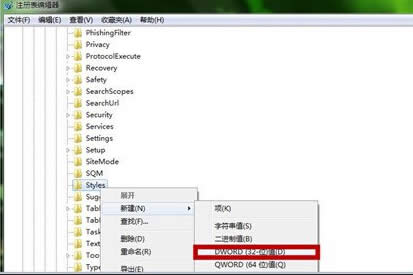 第五步、在“Styles”下,新建“DWORD(32-位)值”。