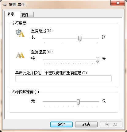 可在調(diào)節(jié)滑塊下方的文本框中按住一個(gè)鍵,對(duì)更改后的重復(fù)延遲和重復(fù)速度進(jìn)行測(cè)試.