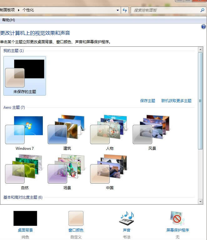 Windows 7,中文名稱視窗7,是由微軟公司(Microsoft)開發的操作系統,內核版本號為Windows NT 6.1。Windows 7可供家庭及商業工作環境:筆記本電腦 、平板電腦 、多媒體中心等使用。Windows 7可供選擇的版本有:入門版(Starter)、家庭普通版(Home Basic)、家庭高級版(Home Premium)、專業版(Professional)、企業版(Enterprise)(非零售)、旗艦版(Ultimate)。 今天系統之家更換windows7系統主題的技巧告訴大家。 主題是Windows背景圖片、外觀顏色和聲音的組合。在Windows 7中,可以通過更換主題快捷 地更改電腦的桌面背景、窗口邊框顏色、聲咅和屏幕保護程序。具體操作步驟如下: