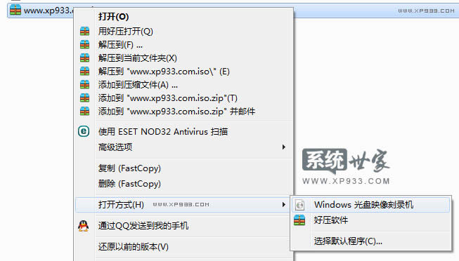 首先你得要一個ISO鏡像文件,然后鼠標(biāo)右鍵 -> 打開方式 -> windows 光盤映像刻錄機。