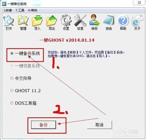 一鍵Ghost備份系統盤:點擊“一鍵備份系統”----“備份”因為onekey不提供開機啟動的還原功能