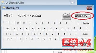3. 在打開的鍵盤布局預覽窗口里面,點擊“更改圖標(C)”按鈕;