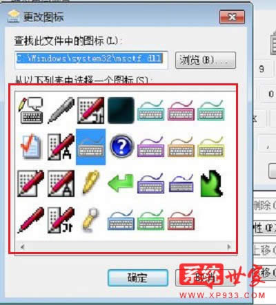 4. 現(xiàn)在可以使用羅列出來的圖標(選中一個圖標一路點擊確定即可),也可以點擊“瀏覽”指定使用外部的圖標文件;