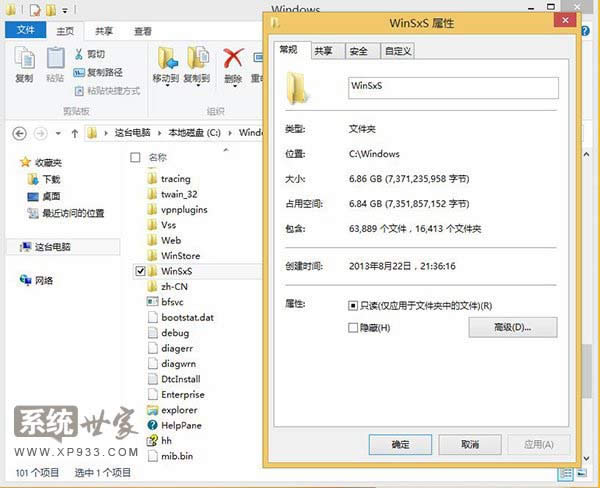 Windows 7,中文名稱視窗7,是由微軟公司(Microsoft)開發的操作系統,內核版本號為Windows NT 6.1。Windows 7可供家庭及商業工作環境:筆記本電腦 、平板電腦 、多媒體中心等使用。Windows 7可供選擇的版本有:入門版(Starter)、家庭普通版(Home Basic)、家庭高級版(Home Premium)、專業版(Professional)、企業版(Enterprise)(非零售)、旗艦版(Ultimate)。 今天林木風查看Win7系統/Win8.1系統 WinSxS文件夾實際大小告訴大家,談到Win7系統/Win8.1冗余,不得不提到這個WinSxS特殊文件夾。該文件夾位于C:\Windows目錄路徑下,里面存儲大量系統系統備份、更新補丁備份。隨著時間的推移,WinSxS也成為系統盤最大的文件夾。 對于普通用戶來說,最關心的是WinSxS文件夾為何持續變大?實際上,WinSxS文件夾具體功能為組件存儲,里面存儲了Windows重要組件功能,例如大家熟悉的C:\Windows\system32目錄。 而WinSxS文件夾自身與C:\Windows\system32目錄創建了硬鏈接,因此,我們很難在資源管理器直接查看實際大小,參考下圖: