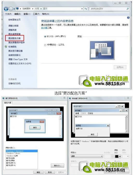 想要更改Win7默認(rèn)字體,首先要在控制面板的“外觀”中找到“顯示”一項,選擇左側(cè)的“更改配色方案”,點擊進入窗口顏色和外觀對話框,再點擊“高級”按鈕,在接下來的界面中,我們就可以選擇自己喜歡的系統(tǒng)顯示字體了。