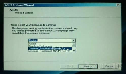 第二,一直點擊Next,直到出現選擇分區項目,選擇哪個可以根據你的實際情況選擇。分區項目說明: 1) 僅將Windows恢復到第一分區:本項目將只會刪除第一個分區中的內容,讓系統保留其他分區,并將系統安裝于" C "盤。