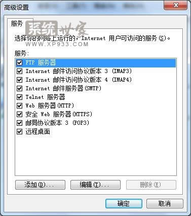 4. 在共享頁面點擊設置,出現高級設置,并勾選所有服務后確定,如下圖所示: