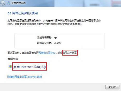 5、無線局域網已經可以使用 (1)如果要在電腦間共享文件,請按照如圖提示啟用文件共享即可。