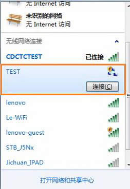 6、其他電腦在無線網絡列表中選擇對應的SSID名稱后選擇“連接”就可成功訪問該無線局域網了。