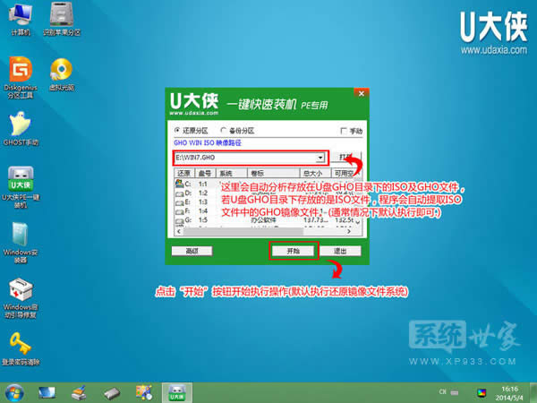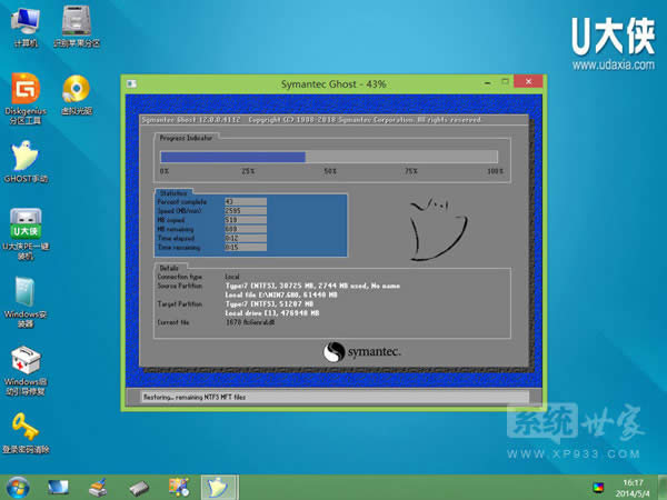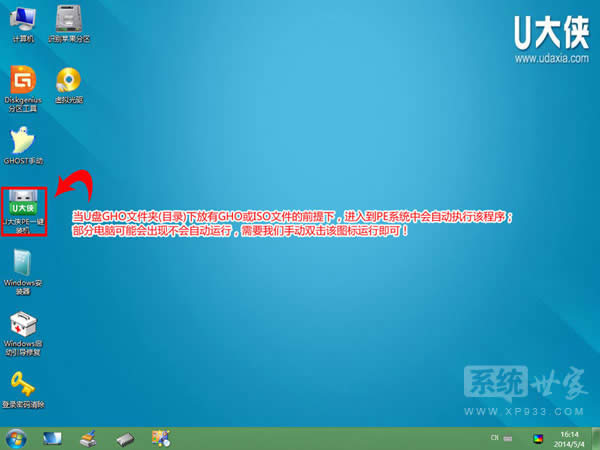 3)進U大俠Win8PE系統后,要是“U大俠PE一鍵裝機”工具沒有自動運行的話,我們就手動雙擊該軟件運行它即可!如下圖所示: