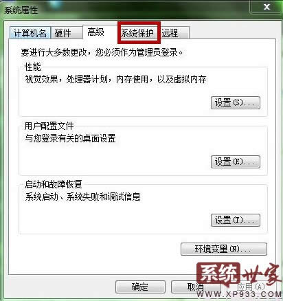 第三步、 在彈出“系統(tǒng)屬性”單擊“系統(tǒng)保護(hù)”頁(yè)面。查看C盤(pán)的還原保護(hù)是開(kāi)啟狀態(tài),并點(diǎn)擊“配置”。