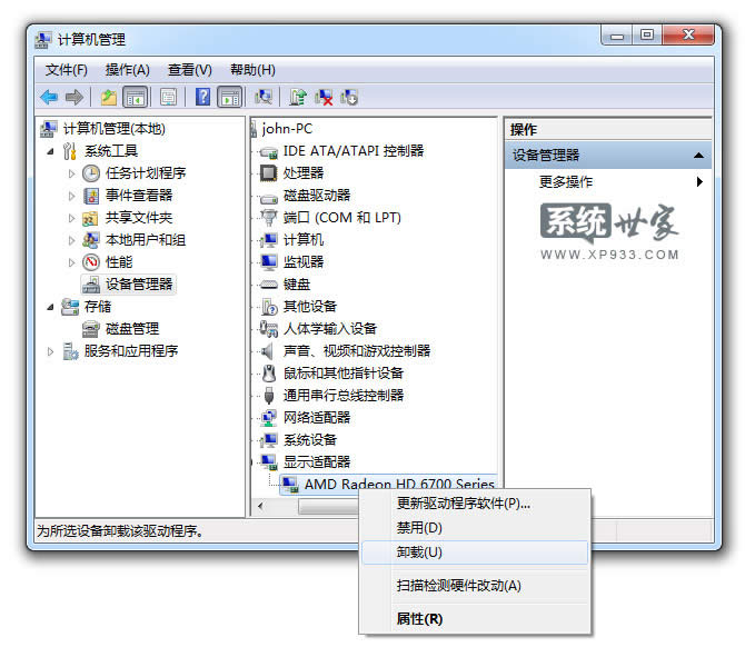 我們找到了驅(qū)動(dòng)的所在位置,那怎么卸載win7系統(tǒng)驅(qū)動(dòng)呢?其實(shí)很簡(jiǎn)單的,鼠標(biāo)點(diǎn)幾下就可以了,下面我們以《卸載顯卡驅(qū)動(dòng)》為例,如下圖。