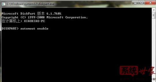 2、然后在打開的命令提示符窗口中輸入“automount enable”命令;