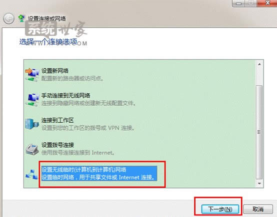 2.選擇設置無線臨時(計算機到計算機)網絡