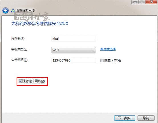 3.輸入網絡名(ssid)、無線密鑰(建議使用wep格式)、并勾選保存這個網絡