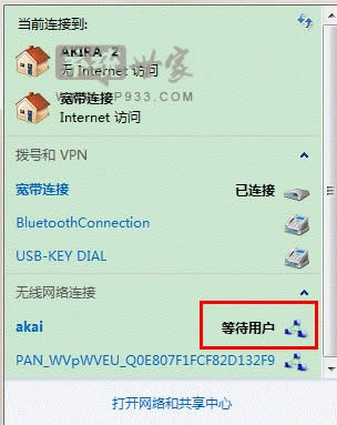 連接后電腦顯示等待用戶
