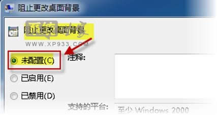 如果Windows7桌面背景被鎖定,也會出現(xiàn)無法更改桌面背景的情況,只要在在組策略中將“阻止更改桌面背景”和“桌面墻紙”分別配置為“未配置”即可。