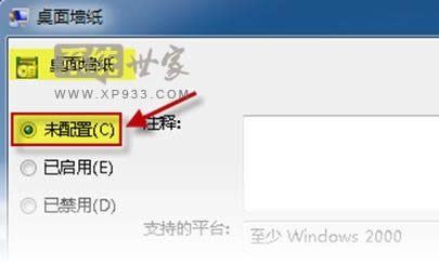組策略中“桌面墻紙”設(shè)置為“未配置” ;