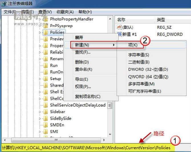 找到 ActiveDesktop 項。(如果沒有,請右擊“Policies”,選擇“新建->項”,并命名為 ActiveDesktop)