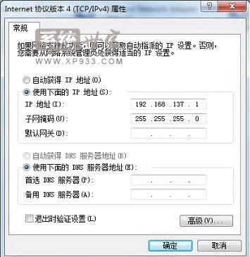 4、本地連接設(shè)置完成之后,另外一個(gè)網(wǎng)卡(有線,無線)IP地址已經(jīng)被系統(tǒng)自動手動指定
