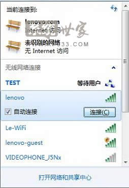 3、如果客戶端是無線網(wǎng)卡,在搜索到的無線網(wǎng)絡(luò)列表中選擇對應(yīng)的SSID名稱后點(diǎn)擊“連接”即可實(shí)現(xiàn)無線共享上網(wǎng)。