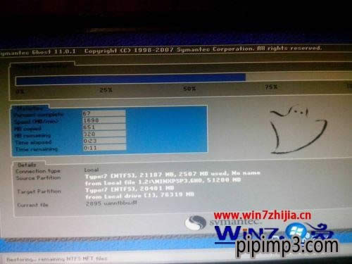 2、于是我就不停的重啟電腦,大概經歷了半個小時左右,終于按下操作系統里的選擇項,一鍵ghost居然被我進去了;