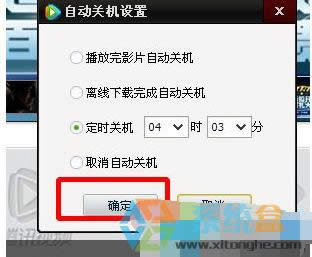5、進入自動關機窗口設置后選擇自己需要的定時關機方式,看完電影或者下載完成后自動關機。