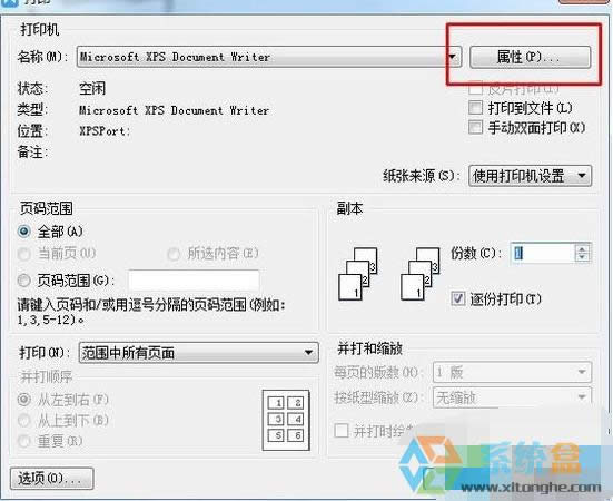 3、然出現(xiàn)打印設置后點擊右側(cè)的“屬性”后,如圖所示。