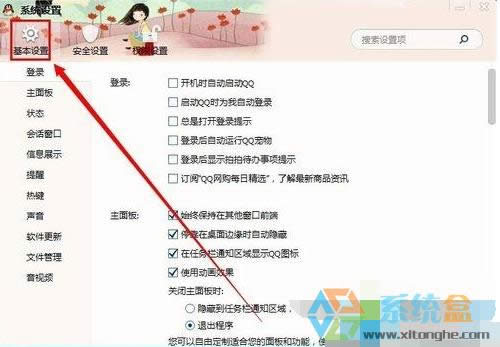 2、在打開系統(tǒng)設置窗口后,點擊左側(cè)的“基本設置”,如圖所示。