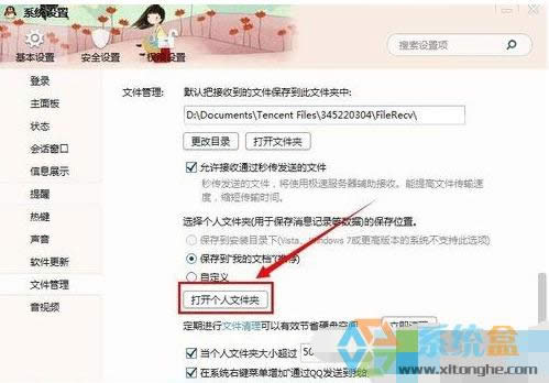 4、點擊打開文件管理后右側(cè)有一個“打開個人文件夾”,找到并點擊該選項卡。