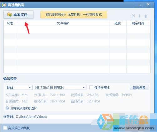 5、然后會有一個音視頻轉碼的操作界面,點擊“添加文件”,找到自己需要轉碼的文件。