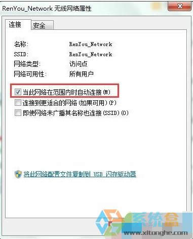 3、點擊屬性后會彈出一個“無線網絡屬性”的對話框,在連接項下將“當此網絡在范圍內自動連接”取消勾選,點擊確定保存設置即可。