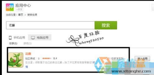 2、在【應(yīng)用中心】頁面的右側(cè),有一個(gè)搜索的導(dǎo)航欄,將【花藤】輸入之后,點(diǎn)擊右側(cè)的“搜索標(biāo)志”進(jìn)行搜索。
